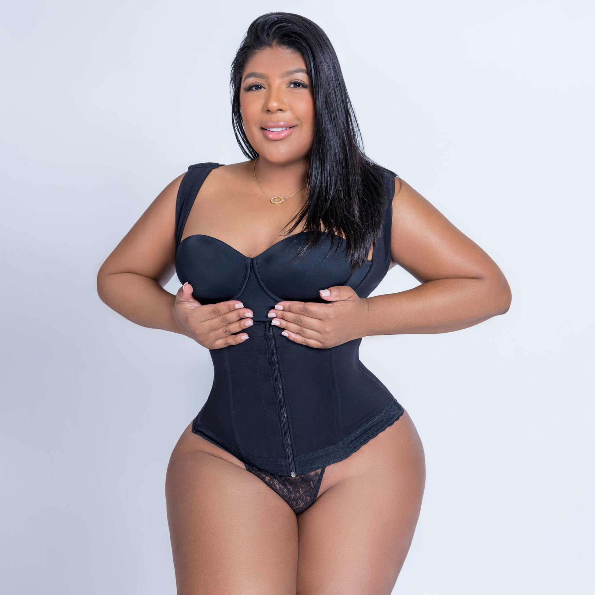 ¡Siente la suavidad y libertad de esta faja 4004 con zipper o broches. Esta faja moldea el abdomen perfectamente mientras los brazos y los senos quedan libres de la compresión. ¡Experimenta la comodidad al usar esta faja, diseñada para destacar tu silueta con hermoso estilo!